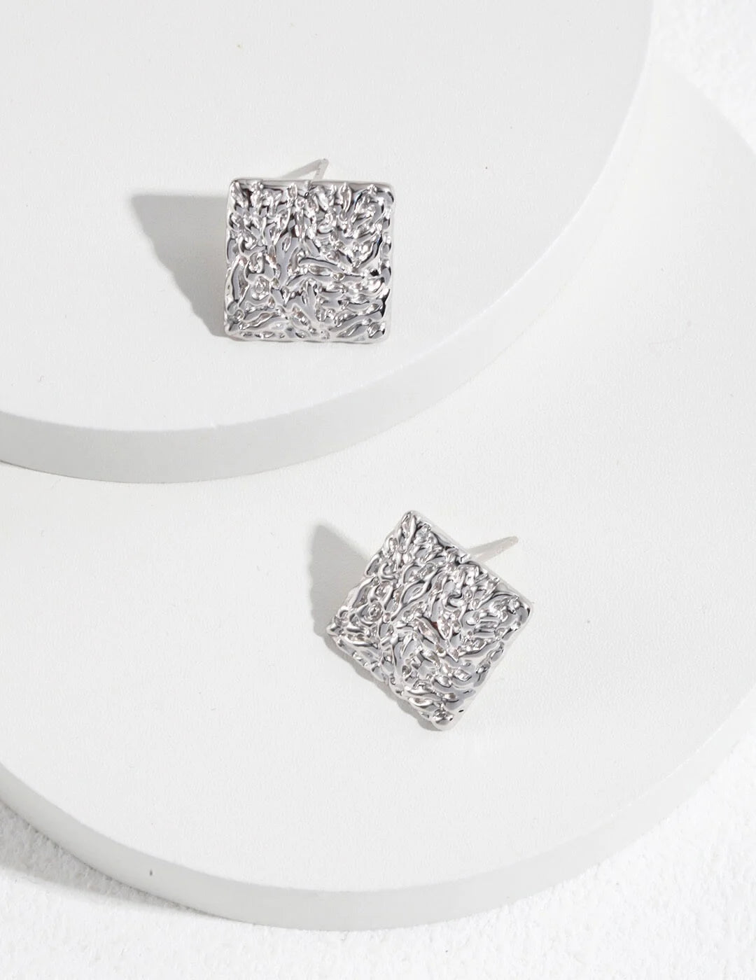 Design: Crafted with S925 sterling silver (Vintage Gold/Platinum White finish) in a textured square shape (as shown). The 16×16mm compact design features a three-dimensional pattern, blending modern minimalism with intricate detail—ideal for adding a sleek accent to daily or formal looks.