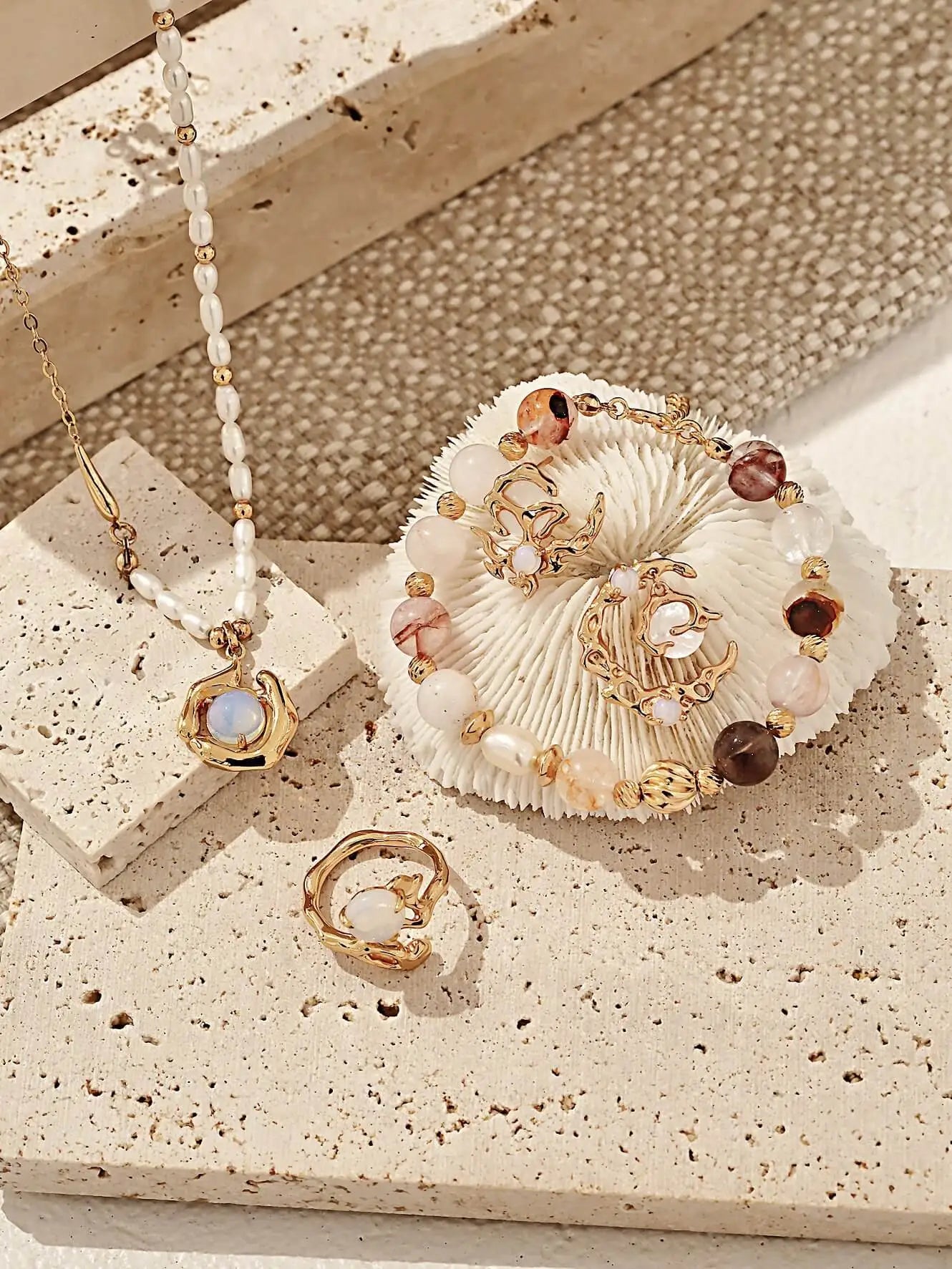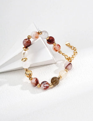 Design: Crafted with S925 sterling silver (Vintage Gold finish) paired with 8mm Red Phantom Quartz, 4mm Diagonal Cut Beads, 8mm Twisted Beads and Natural Pearl (as shown). The 16cm chain with 3cm extender chain fits most wrist sizes, blending textured bead elements for a layered, elegant look suitable for casual or refined outfits.